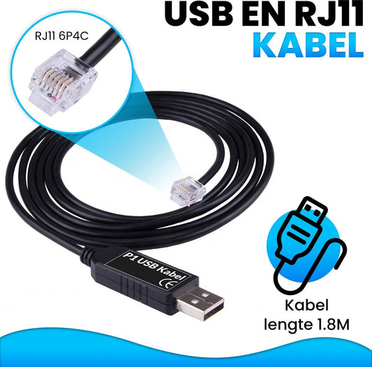 Twenty4seven® Slimme Meter Kabel - Wifi P1 Meter - P1 USB en RJ11 - 1.8 Meter - P1 Splitter
